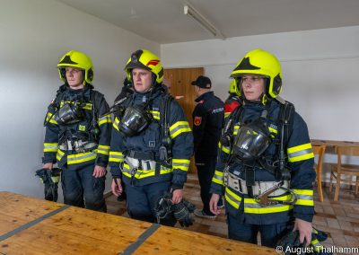 Beide Atemschutztrupps glänzten bei der Prüfung Samstagmittag mit dem fehlerfreien Abarbeiten der gestellten Aufgaben: