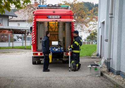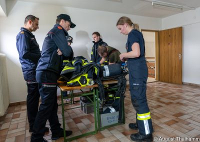 Ebenso waren an beiden Tagen mehrere Kameraden mit dem Atemschutzfahrzeug vor Ort, um die Atemluftflaschen wieder zu befüllen.